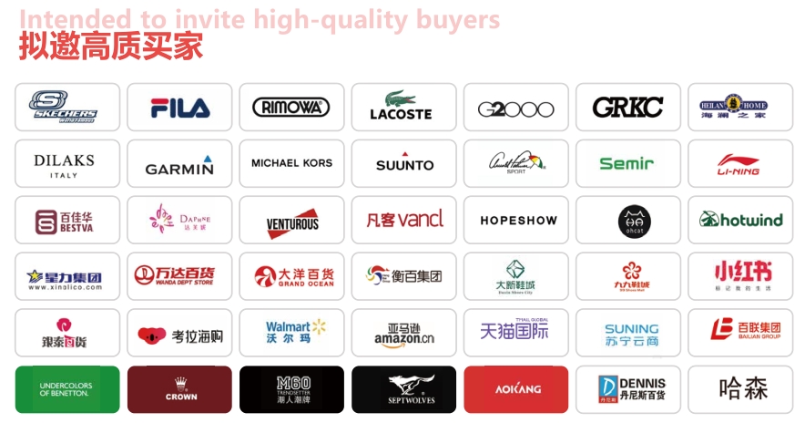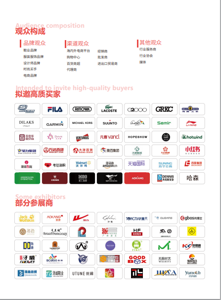 专业采购:鞋业品牌、服装服饰品牌、设计师品牌、时尚买手、电商品牌、渠道观众、海内外电商平台、购物中心、百货商超、代理商、经销商、批发商、进出口贸易商、其他观众、行业服务商、行业协会、媒体