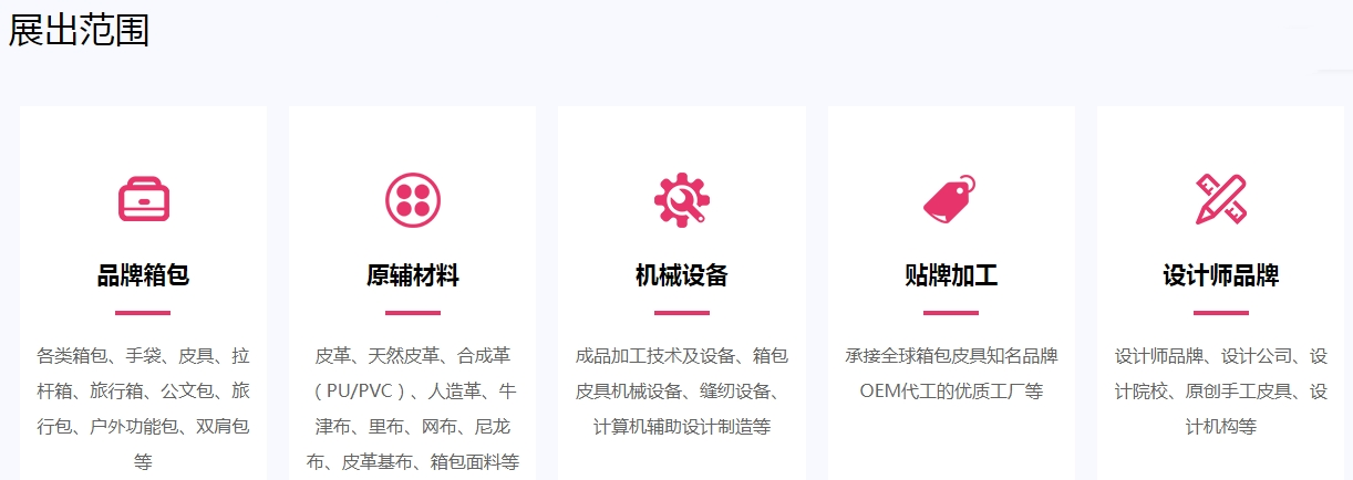 第22届上海国际箱包展览会作为全球三大专业箱包展之一,由上海市商务委员会批准,中国皮革协会、中国轻工工艺品进出口商会、上海市皮革技术协会、浙江省皮革行业协会联合主办,上海能博会展有限公司承办,是全球箱包制造商与经销商、品牌商、代理商、贸易商、电商、设计师、买手等对接交流的高端平台,聚焦箱包产业,汇聚行业产品、技术、信息、人脉,推动箱包内外贸发展新空间,打造箱包全产业链生态圈展会。