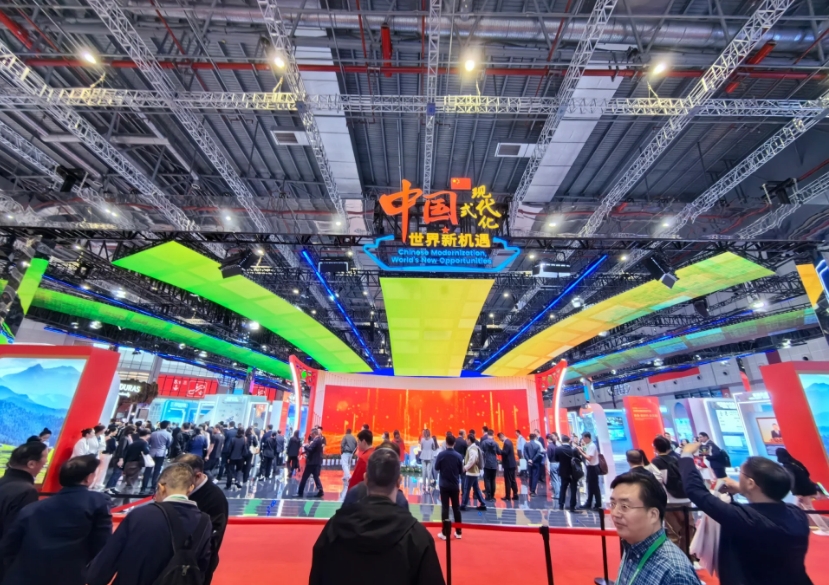 习近平强调,当前,世界经济复苏动力不足,需要各国同舟共济、共谋发展。中国将始终是世界发展的重要机遇,将坚定推进高水平开放,持续推动经济全球化朝着更加开放、包容、普惠、平衡、共赢的方向发展。希望进博会加快提升构建新发展格局的窗口功能,以中国新发展为世界提供新机遇;充分发挥推动高水平开放的平台作用,让中国大市场成为世界共享的大市场;更好提供全球共享的国际公共产品服务,助力推动构建开放型世界经济,让合作共赢惠及世界。